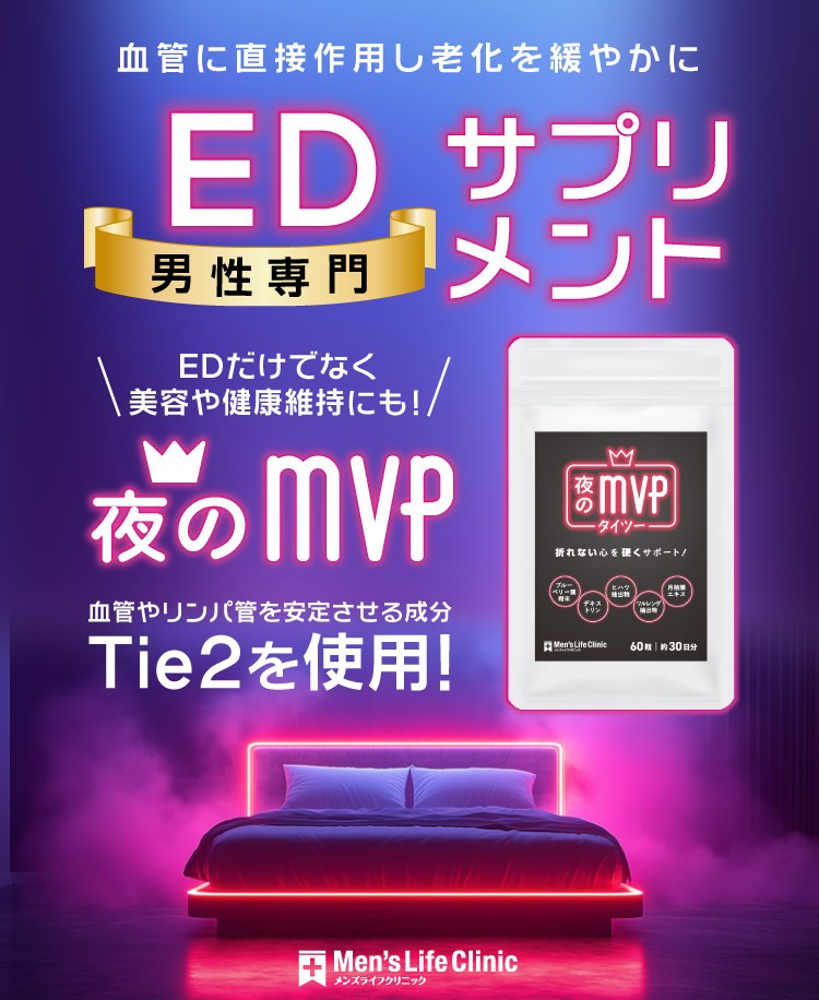 主にTie2という血管やリンパ管を安定させる成分で構成されており、ED以外にもエイジングケアや健康維持などの効能が期待できます。